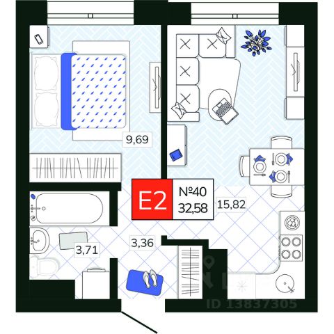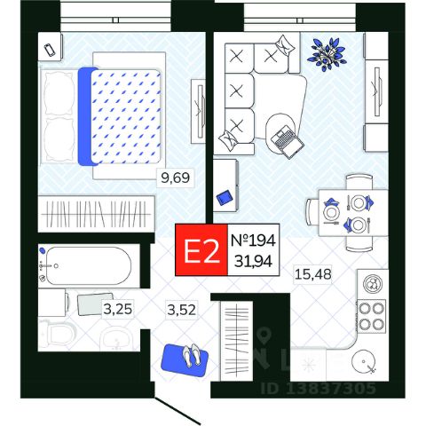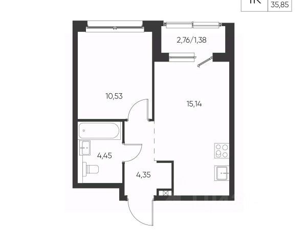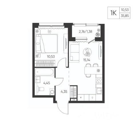 Санузел: Пол и стены — керамогранит/плитка, натяжной потолок, влагозащитные розетки, установлены унитаз, раковина со смесителем, акриловая ванна (или душевой поддон в студиях) и смеситель с душевой лейкой, предусмотрено размещение полотенцесушителя. Есть розетка и выводы для стиральной машины - холодная вода и слив .