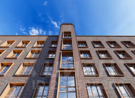 Яркая современная архитектура с выступающими эркерами, которые добавляют уникальности как экстерьеру, так и внутреннему дизайну квартир. Корзины для кондиционеров повторяющие контрастные цвета фасада.