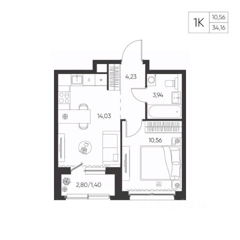 Квартира в новом жилом комплексе комфорт-класса "Всё и сразу".