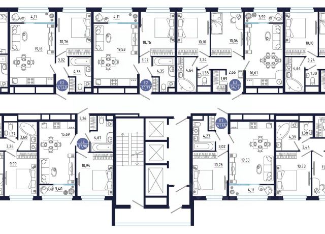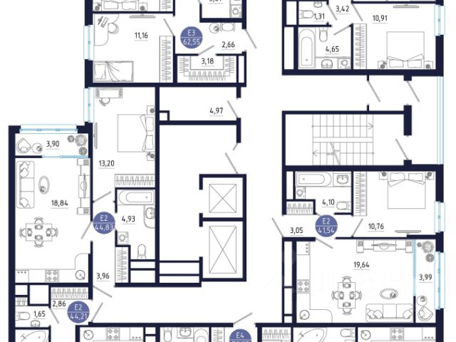 В комплексе представлены студии, однокомнатные, двухкомнатные и трехкомнатные планировки площадью от 25 до 107 кв. м. Квартиры с террасами, мастер-спальнями, окном с ванной — здесь каждый сможет выбрать жилье под свой сценарий жизни.