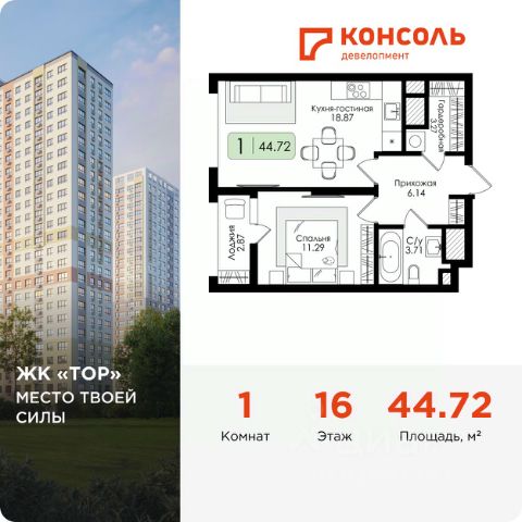 Продается однокомнатная квартира 149 с чистовой отделкой в ЖК "ТОР" площадью 44.72 на 16 этаже от застройщика Консоль девелопмент. Жилому комплексу ТОР присвоен повышенный уровень комфортности — комфорт плюс. Он подразумевает светлые просторные квартиры с большими окнами и удобной планировкой, оригинальные парадные и общественные пространства.