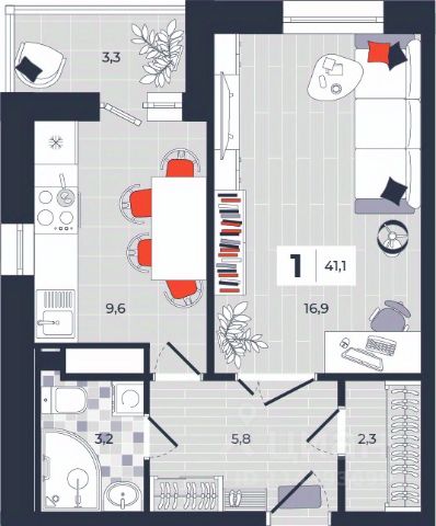 Продаётся 1-комнатная квартира в строящемся доме (Дом 30), срок сдачи: IV-кв. 2026, общей площадью 41.1 кв.м., на 4 этаже. Расположение, транспортная доступность Новый жилой комплекс "Юго-Восточный" строится в Туле, в 3,5 км от центра города. Благодаря удачным транспортным развязкам, автолюбители смогут доехать до центральных кварталов примерно за 5 10 минут, составив наиболее быстрый и удобный маршрут с учетом загруженности дорог. Проблем с мобильностью не возникнет и у пассажиров общественного транспорта. Рядом с домом расположены остановки автобусов и маршрутных такси, которые быстро довезут до любого района города. Так, чтобы добраться до центра, следует дойти пешком до остановки "Медтехника", где останавливается маршрутное такси, доезжающее до центральных кварталов всего за 7 8 минут. Инфраструктура Район, где возводится новый жилой комплекс, активно застраивается, и сеть инфраструктуры сов временем будет расширяться. Но и сейчас все, что нужно для комфортной жизни в городе, находится недалеко от жилого комплекса. В шаговой доступности расположены продуктовые магазины: "Виктория", "Овощи-фрукты", Магазин рыбы и мяса птицы, магазин мяса и колбас "У Максима", супермаркеты "Дикси", "Пятерочка", "SPAR". Неподалеку находится гипермаркет "Линия", крупный торговый центр, в котором расположены отделения банков, гипермаркет "Глобус", салон оптики, мебельный магазин "Столплит", зоомагазин "Четыре лапы" и пр. В соседнем здании находится строительный гипермаркет "Леруа Мерлен", за ним крупный магазин товаров для спорта, туризма и активного отдыха "Декатлон".Недалеко от жилого комплекса открыты кафе и рестораны: кофейня "Bonape", пиццерия "Культура", кафе "Вкуснов", кафе быстрого обслуживания "Rapido", ресторан "У фонтана" и пр.В районе есть аптеки, поликлиники, диагностические центры. В шаговой доступности от жилого комплекса расположено несколько детских садиков, в том числе, садик комбинированного вида "Алые паруса". Есть дошкольные отделения, входящие в состав образовательных центров, Центры развития ребенка. Поблизости расположены средние школы, в том числе, школа для детей с ОВЗ. Рядом с жилым комплексом находится Тульская Духовная Семинария и Суворовское училище. Надежность застройщик: достраивает объект ООО Ин-Групп.АрхитектураЖилой комплекс будет представлен 19 монолитно-кирпичными корпусами переменной этажности, выполненными в едином архитектурном стиле. При строительстве ЖК "Юго-Восточный" применяются современные материалы высокого качества, которые обеспечивают надежность домов и комфортный микроклимат в помещениях. Каждая секция оснащается современными лифтами. Помещения общего пользования отделываются экологичными материалами. Квартиры предлагаются однокомнатные (от 43,9 кв. м), двухкомнатные (от 45,8 кв. м), трехкомнатные (от 60,4 кв. м) и четырехкомнатные (от 87,2 кв. м), а также уютные студии (от 28,9 кв. м).На внутренней территории проводится комплексное благоустройство: озеленение, организация игровых площадок, мест для отдыха и зан