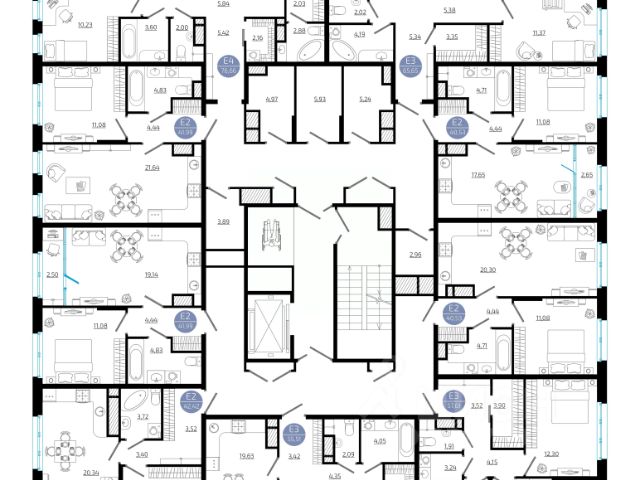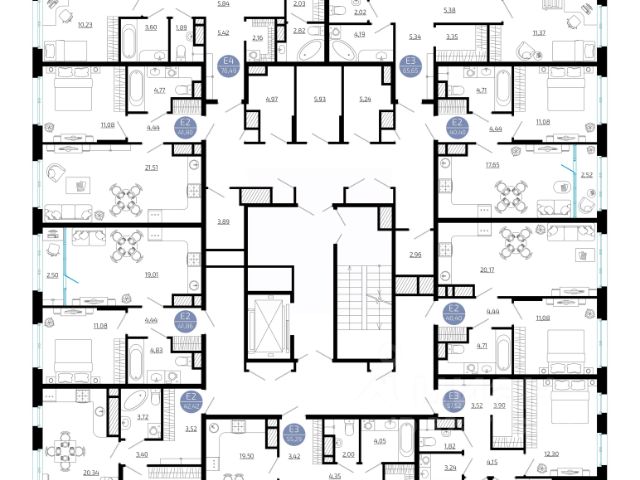 — Кладовые на каждом этаже (4 шт. на этаже), доступно приобретение кладовых помещений на -1 этаже — для хранения сезонных вещей, спортивного инвентаря, заготовок.