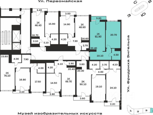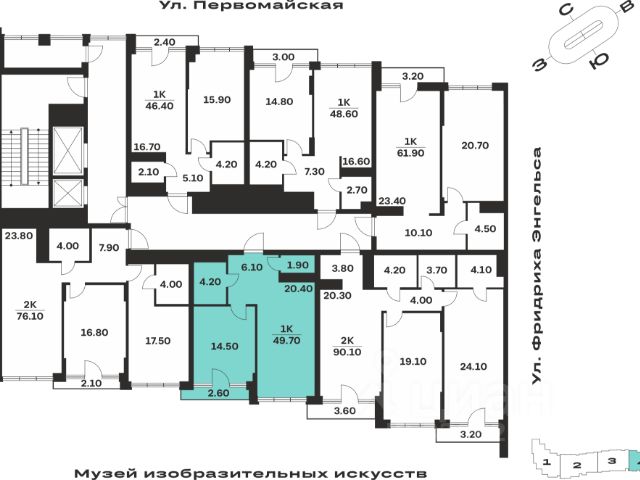 Рядом вся необходимая инфраструктура: магазины, продовольственный рынок, торговый центр, кинотеатр, кафе, банки, медицинские центры, бассейн, ВУЗ, школы и детские сады. Планируется постройка своего детского сада на 240 мест. Своя галерея коммерции. До проспекта Ленина 5 мин. Двор без машин, территория закрыта, с видеонаблюдением. Большая надземная парковка находится рядом по периметру двора.