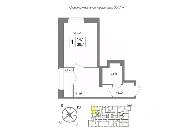 • ✅ Минимальная площадь: 30,7 м²