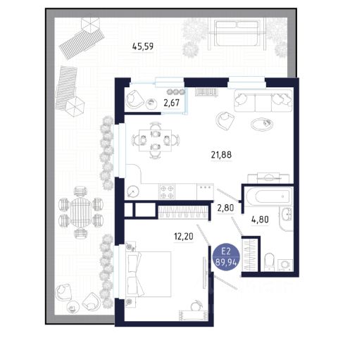 • ✅ Объект наибольшей площади: 59,8 м²