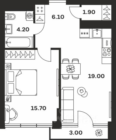 Коммуникации: установлены пластиковые трубы водоподведения и водоотведения, новые радиаторы отопления, сделана удобная разводка электропроводки и пластиковых труб. В санузле дополнительно установлен немецкий душевой поддон Kaldewei.
