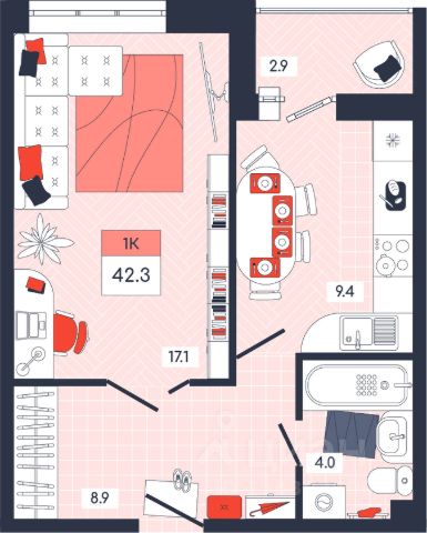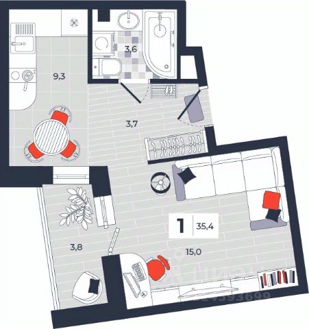 Продаётся 1-комнатная квартира в строящемся доме (Дом 20), срок сдачи: I-кв. 2026, общей площадью 41.8 кв.м., на 5 этаже. Расположение, транспортная доступность Новый жилой комплекс "Юго-Восточный" строится в Туле, в 3,5 км от центра города. Благодаря удачным транспортным развязкам, автолюбители смогут доехать до центральных кварталов примерно за 5 10 минут, составив наиболее быстрый и удобный маршрут с учетом загруженности дорог. Проблем с мобильностью не возникнет и у пассажиров общественного транспорта. Рядом с домом расположены остановки автобусов и маршрутных такси, которые быстро довезут до любого района города. Так, чтобы добраться до центра, следует дойти пешком до остановки "Медтехника", где останавливается маршрутное такси, доезжающее до центральных кварталов всего за 7 8 минут. Инфраструктура Район, где возводится новый жилой комплекс, активно застраивается, и сеть инфраструктуры сов временем будет расширяться. Но и сейчас все, что нужно для комфортной жизни в городе, находится недалеко от жилого комплекса. В шаговой доступности расположены продуктовые магазины: "Виктория", "Овощи-фрукты", Магазин рыбы и мяса птицы, магазин мяса и колбас "У Максима", супермаркеты "Дикси", "Пятерочка", "SPAR". Неподалеку находится гипермаркет "Линия", крупный торговый центр, в котором расположены отделения банков, гипермаркет "Глобус", салон оптики, мебельный магазин "Столплит", зоомагазин "Четыре лапы" и пр. В соседнем здании находится строительный гипермаркет "Леруа Мерлен", за ним крупный магазин товаров для спорта, туризма и активного отдыха "Декатлон".Недалеко от жилого комплекса открыты кафе и рестораны: кофейня "Bonape", пиццерия "Культура", кафе "Вкуснов", кафе быстрого обслуживания "Rapido", ресторан "У фонтана" и пр.В районе есть аптеки, поликлиники, диагностические центры. В шаговой доступности от жилого комплекса расположено несколько детских садиков, в том числе, садик комбинированного вида "Алые паруса". Есть дошкольные отделения, входящие в состав образовательных центров, Центры развития ребенка. Поблизости расположены средние школы, в том числе, школа для детей с ОВЗ. Рядом с жилым комплексом находится Тульская Духовная Семинария и Суворовское училище. Надежность застройщик: достраивает объект ООО Ин-Групп.АрхитектураЖилой комплекс будет представлен 19 монолитно-кирпичными корпусами переменной этажности, выполненными в едином архитектурном стиле. При строительстве ЖК "Юго-Восточный" применяются современные материалы высокого качества, которые обеспечивают надежность домов и комфортный микроклимат в помещениях. Каждая секция оснащается современными лифтами. Помещения общего пользования отделываются экологичными материалами. Квартиры предлагаются однокомнатные (от 43,9 кв. м), двухкомнатные (от 45,8 кв. м), трехкомнатные (от 60,4 кв. м) и четырехкомнатные (от 87,2 кв. м), а также уютные студии (от 28,9 кв. м).На внутренней территории проводится комплексное благоустройство: озеленение, организация игровых площадок, мест для отдыха и заня Продам 1-комнатную квартиру в ЖК Юго-Восточный в Туле.