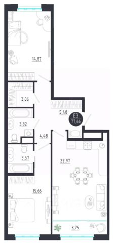 Продаётся 2-комнатная квартира в строящемся доме (Корпус 1), срок сдачи: IV-кв. 2028, общей площадью 77.66 кв.м., на 3 этаже. Новый жилой комплекс "LANGERHALL" от застройщика "ЦСМ" расположен по адресу: г. Тула, Оборонная улица
