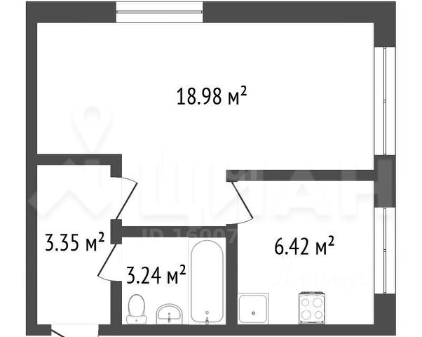 Популярная и функциональная планировка - "распашонка", при которой обе комнаты расположены по разные стороны от входа.