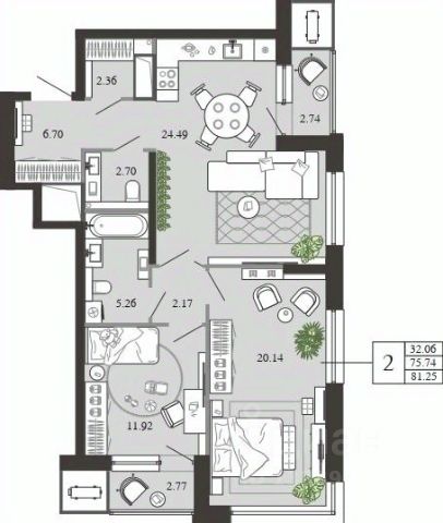 • ✅ Минимальная площадь: 59,2 м²