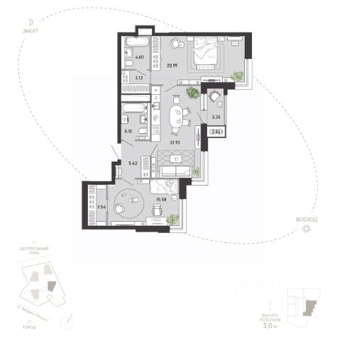 Номер в базе: 53988. Продается просторная светлая квартира в планировке евро-2, приобреталась у застройщика. Видовой 13 этаж, арочные окна на северо-запад - наблюдать чудесные закаты. Преимущество квартиры - наличие лоджии, а также открытого французского балкона.
