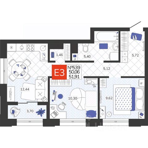 Продаётся 2-комнатная квартира в строящемся доме (Дом 30), срок сдачи: IV-кв. 2026, общей площадью 43.3 кв.м., на 12 этаже. Расположение, транспортная доступность Новый жилой комплекс "Юго-Восточный" строится в Туле, в 3,5 км от центра города. Благодаря удачным транспортным развязкам, автолюбители смогут доехать до центральных кварталов примерно за 5 10 минут, составив наиболее быстрый и удобный маршрут с учетом загруженности дорог. Проблем с мобильностью не возникнет и у пассажиров общественного транспорта. Рядом с домом расположены остановки автобусов и маршрутных такси, которые быстро довезут до любого района города. Так, чтобы добраться до центра, следует дойти пешком до остановки "Медтехника", где останавливается маршрутное такси, доезжающее до центральных кварталов всего за 7 8 минут. Инфраструктура Район, где возводится новый жилой комплекс, активно застраивается, и сеть инфраструктуры сов временем будет расширяться. Но и сейчас все, что нужно для комфортной жизни в городе, находится недалеко от жилого комплекса. В шаговой доступности расположены продуктовые магазины: "Виктория", "Овощи-фрукты", Магазин рыбы и мяса птицы, магазин мяса и колбас "У Максима", супермаркеты "Дикси", "Пятерочка", "SPAR". Неподалеку находится гипермаркет "Линия", крупный торговый центр, в котором расположены отделения банков, гипермаркет "Глобус", салон оптики, мебельный магазин "Столплит", зоомагазин "Четыре лапы" и пр. В соседнем здании находится строительный гипермаркет "Леруа Мерлен", за ним крупный магазин товаров для спорта, туризма и активного отдыха "Декатлон".Недалеко от жилого комплекса открыты кафе и рестораны: кофейня "Bonape", пиццерия "Культура", кафе "Вкуснов", кафе быстрого обслуживания "Rapido", ресторан "У фонтана" и пр.В районе есть аптеки, поликлиники, диагностические центры. В шаговой доступности от жилого комплекса расположено несколько детских садиков, в том числе, садик комбинированного вида "Алые паруса". Есть дошкольные отделения, входящие в состав образовательных центров, Центры развития ребенка. Поблизости расположены средние школы, в том числе, школа для детей с ОВЗ. Рядом с жилым комплексом находится Тульская Духовная Семинария и Суворовское училище. Надежность застройщик: достраивает объект ООО Ин-Групп.АрхитектураЖилой комплекс будет представлен 19 монолитно-кирпичными корпусами переменной этажности, выполненными в едином архитектурном стиле. При строительстве ЖК "Юго-Восточный" применяются современные материалы высокого качества, которые обеспечивают надежность домов и комфортный микроклимат в помещениях. Каждая секция оснащается современными лифтами. Помещения общего пользования отделываются экологичными материалами. Квартиры предлагаются однокомнатные (от 43,9 кв. м), двухкомнатные (от 45,8 кв. м), трехкомнатные (от 60,4 кв. м) и четырехкомнатные (от 87,2 кв. м), а также уютные студии (от 28,9 кв. м).На внутренней территории проводится комплексное благоустройство: озеленение, организация игровых площадок, мест для отдыха и за