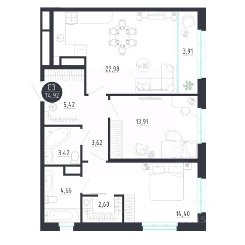 • ✓ В базе Циан 8 2-комнатных квартир на 13 этаже в городском округе Туле Тульской области