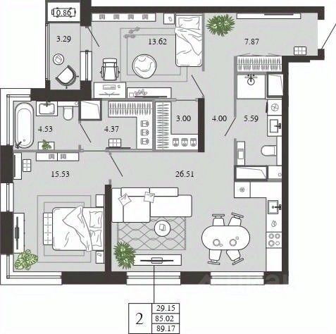 • ✅ Минимальная площадь: 59,2 м²