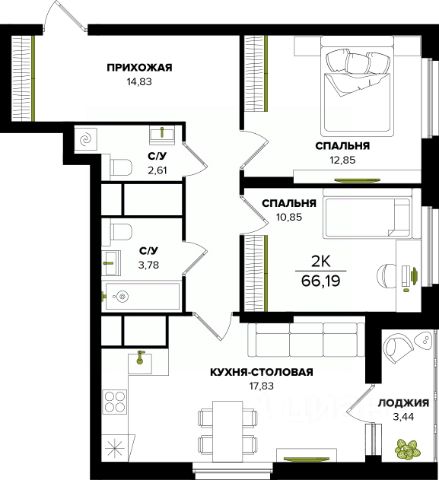 • ✓ В базе Циан 107 2-комнатных квартир на 15 этаже в Туле