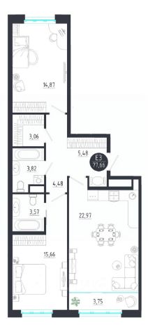 Продаётся 2-комнатная квартира в строящемся доме (Дом 8 (секции 1-5)), срок сдачи: III-кв. 2026, общей площадью 66.54 кв.м., на 2 этаже. Жилой квартал на Хлебной "Таланты" - союз индивидуальной архитектуры и традиций качества постройки, вдохновленный наследием русской культуры: литературой, живописью и музыкой. Современный и несущий в себе динамику обновления, он органично вписан в привычный образ жизни одного из самых исторических истоков города. Премиальная локация позволяет жителям прочувствовать все преимущества жизни в центре города. Все лучшее и нужное всегда рядом: современные городские пространства, популярные заведения города; дошкольные развивающие центры; образовательные учреждения для школьников и студентов; модные бутики и салоны красоты. Тринадцать жилых корпусов выполнены в едином стиле и расположены на общем стилобате. Вместе они формируют городской силуэт, сочетая открытость с приватностью. Здания корпусов представляют собой односекционные жилые дома минималистической формы. Стильный кирпичный фасад и широкие панорамные окна формируют изысканный архитектурный облик домов. Архитекторы и проектировщики компании вышли за рамки привычных планировочных решений и создали по-настоящему модные и просторные квартиры. Увеличенные по размерам двух и трехкомнатные никого не оставят равнодушными, а уютные, но не давящие однокомнатные помогут раскрыться таланту каждого. Квартиры с личными террасами и собственной лаундж-зоной на крыше помогут найти вдохновение, чтобы воплотить в жизнь самые необычные идеи. На территории есть общественные пространства и места для тихого отдыха, кафе, фермерские лавки, аллея художников и музыкальный павильон. Общественные пространства в каждой секции уникальны и продолжают единый архитектурный замысел проекта. Концептуальный дизайн-интерьер совмещает функциональность и эстетику, подчеркивая прогрессивность и гармоничность жителей. Внутренний двор комплекса разделен на функциональные зоны, плавно перетекающие друг в друга. По всему периметру расположены естественные насаждения, места для занятий спортом, детские площадки и лаундж-зоны. Каждый сможет найти себе занятие по душе, не выходя за пределы квартала. Сохранить уютный микроклимат на территории позволяет подземный паркинг. Благодаря ему, жители могут оставить свой автомобиль в теплом охраняемом пространстве и попасть в квартиру, минуя улицу.