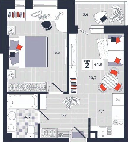Продаётся 2-комнатная квартира в строящемся доме (Дом 20), срок сдачи: IV-кв. 2025, общей площадью 65.1 кв.м., на 2 этаже. Расположение, транспортная доступность Новый жилой комплекс "Юго-Восточный" строится в Туле, в 3,5 км от центра города. Благодаря удачным транспортным развязкам, автолюбители смогут доехать до центральных кварталов примерно за 5 10 минут, составив наиболее быстрый и удобный маршрут с учетом загруженности дорог. Проблем с мобильностью не возникнет и у пассажиров общественного транспорта. Рядом с домом расположены остановки автобусов и маршрутных такси, которые быстро довезут до любого района города. Так, чтобы добраться до центра, следует дойти пешком до остановки "Медтехника", где останавливается маршрутное такси, доезжающее до центральных кварталов всего за 7 8 минут. Инфраструктура Район, где возводится новый жилой комплекс, активно застраивается, и сеть инфраструктуры сов временем будет расширяться. Но и сейчас все, что нужно для комфортной жизни в городе, находится недалеко от жилого комплекса. В шаговой доступности расположены продуктовые магазины: "Виктория", "Овощи-фрукты", Магазин рыбы и мяса птицы, магазин мяса и колбас "У Максима", супермаркеты "Дикси", "Пятерочка", "SPAR". Неподалеку находится гипермаркет "Линия", крупный торговый центр, в котором расположены отделения банков, гипермаркет "Глобус", салон оптики, мебельный магазин "Столплит", зоомагазин "Четыре лапы" и пр. В соседнем здании находится строительный гипермаркет "Леруа Мерлен", за ним крупный магазин товаров для спорта, туризма и активного отдыха "Декатлон".Недалеко от жилого комплекса открыты кафе и рестораны: кофейня "Bonape", пиццерия "Культура", кафе "Вкуснов", кафе быстрого обслуживания "Rapido", ресторан "У фонтана" и пр.В районе есть аптеки, поликлиники, диагностические центры. В шаговой доступности от жилого комплекса расположено несколько детских садиков, в том числе, садик комбинированного вида "Алые паруса". Есть дошкольные отделения, входящие в состав образовательных центров, Центры развития ребенка. Поблизости расположены средние школы, в том числе, школа для детей с ОВЗ. Рядом с жилым комплексом находится Тульская Духовная Семинария и Суворовское училище. Надежность застройщик: достраивает объект ООО Ин-Групп.АрхитектураЖилой комплекс будет представлен 19 монолитно-кирпичными корпусами переменной этажности, выполненными в едином архитектурном стиле. При строительстве ЖК "Юго-Восточный" применяются современные материалы высокого качества, которые обеспечивают надежность домов и комфортный микроклимат в помещениях. Каждая секция оснащается современными лифтами. Помещения общего пользования отделываются экологичными материалами. Квартиры предлагаются однокомнатные (от 43,9 кв. м), двухкомнатные (от 45,8 кв. м), трехкомнатные (от 60,4 кв. м) и четырехкомнатные (от 87,2 кв. м), а также уютные студии (от 28,9 кв. м).На внутренней территории проводится комплексное благоустройство: озеленение, организация игровых площадок, мест для отдыха и зан