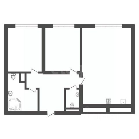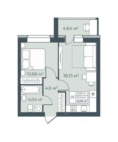 Санузел: Пол и стены — керамогранит, натяжной потолок, влагозащитные розетки, установлены унитаз, раковина со смесителем, акриловая ванна (или душевой поддон в студиях) и смеситель с душевой лейкой, предусмотрено размещение полотенцесушителя. Есть розетка и выводы для стиральной машины - холодная вода и слив.