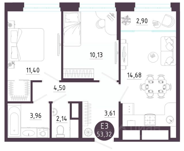 • ✅ Минимальная площадь: 40,8 м²