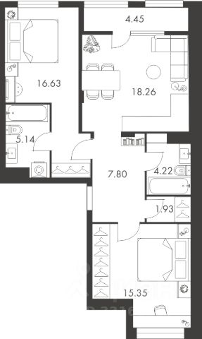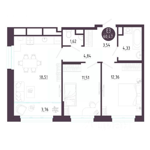 Квартира в новом жилом комплексе комфорт-класса "Всё и сразу".