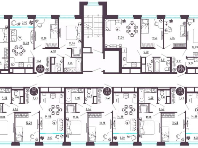 - Системы водоснабжения и отопления разведены горизонтально в конструкции пола
