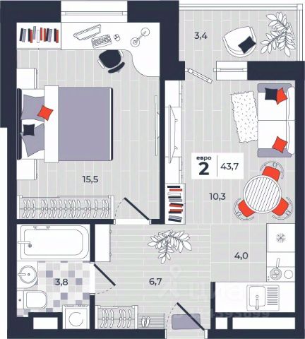 Продаётся 2-комнатная квартира в строящемся доме (Дом 30), срок сдачи: IV-кв. 2026, общей площадью 46.4 кв.м., на 9 этаже. Расположение, транспортная доступность Новый жилой комплекс "Юго-Восточный" строится в Туле, в 3,5 км от центра города. Благодаря удачным транспортным развязкам, автолюбители смогут доехать до центральных кварталов примерно за 5 10 минут, составив наиболее быстрый и удобный маршрут с учетом загруженности дорог. Проблем с мобильностью не возникнет и у пассажиров общественного транспорта. Рядом с домом расположены остановки автобусов и маршрутных такси, которые быстро довезут до любого района города. Так, чтобы добраться до центра, следует дойти пешком до остановки "Медтехника", где останавливается маршрутное такси, доезжающее до центральных кварталов всего за 7 8 минут. Инфраструктура Район, где возводится новый жилой комплекс, активно застраивается, и сеть инфраструктуры сов временем будет расширяться. Но и сейчас все, что нужно для комфортной жизни в городе, находится недалеко от жилого комплекса. В шаговой доступности расположены продуктовые магазины: "Виктория", "Овощи-фрукты", Магазин рыбы и мяса птицы, магазин мяса и колбас "У Максима", супермаркеты "Дикси", "Пятерочка", "SPAR". Неподалеку находится гипермаркет "Линия", крупный торговый центр, в котором расположены отделения банков, гипермаркет "Глобус", салон оптики, мебельный магазин "Столплит", зоомагазин "Четыре лапы" и пр. В соседнем здании находится строительный гипермаркет "Леруа Мерлен", за ним крупный магазин товаров для спорта, туризма и активного отдыха "Декатлон".Недалеко от жилого комплекса открыты кафе и рестораны: кофейня "Bonape", пиццерия "Культура", кафе "Вкуснов", кафе быстрого обслуживания "Rapido", ресторан "У фонтана" и пр.В районе есть аптеки, поликлиники, диагностические центры. В шаговой доступности от жилого комплекса расположено несколько детских садиков, в том числе, садик комбинированного вида "Алые паруса". Есть дошкольные отделения, входящие в состав образовательных центров, Центры развития ребенка. Поблизости расположены средние школы, в том числе, школа для детей с ОВЗ. Рядом с жилым комплексом находится Тульская Духовная Семинария и Суворовское училище. Надежность застройщик: достраивает объект ООО Ин-Групп.АрхитектураЖилой комплекс будет представлен 19 монолитно-кирпичными корпусами переменной этажности, выполненными в едином архитектурном стиле. При строительстве ЖК "Юго-Восточный" применяются современные материалы высокого качества, которые обеспечивают надежность домов и комфортный микроклимат в помещениях. Каждая секция оснащается современными лифтами. Помещения общего пользования отделываются экологичными материалами. Квартиры предлагаются однокомнатные (от 43,9 кв. м), двухкомнатные (от 45,8 кв. м), трехкомнатные (от 60,4 кв. м) и четырехкомнатные (от 87,2 кв. м), а также уютные студии (от 28,9 кв. м).На внутренней территории проводится комплексное благоустройство: озеленение, организация игровых площадок, мест для отдыха и зан