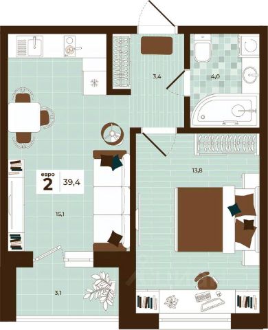 Продаётся 2-комнатная квартира в строящемся доме (Дом 28), срок сдачи: I-кв. 2027, общей площадью 40.2 кв.м., на 9 этаже. Расположение, транспортная доступность Новый жилой комплекс "Юго-Восточный" строится в Туле, в 3,5 км от центра города. Благодаря удачным транспортным развязкам, автолюбители смогут доехать до центральных кварталов примерно за 5 10 минут, составив наиболее быстрый и удобный маршрут с учетом загруженности дорог. Проблем с мобильностью не возникнет и у пассажиров общественного транспорта. Рядом с домом расположены остановки автобусов и маршрутных такси, которые быстро довезут до любого района города. Так, чтобы добраться до центра, следует дойти пешком до остановки "Медтехника", где останавливается маршрутное такси, доезжающее до центральных кварталов всего за 7 8 минут. Инфраструктура Район, где возводится новый жилой комплекс, активно застраивается, и сеть инфраструктуры сов временем будет расширяться. Но и сейчас все, что нужно для комфортной жизни в городе, находится недалеко от жилого комплекса. В шаговой доступности расположены продуктовые магазины: "Виктория", "Овощи-фрукты", Магазин рыбы и мяса птицы, магазин мяса и колбас "У Максима", супермаркеты "Дикси", "Пятерочка", "SPAR". Неподалеку находится гипермаркет "Линия", крупный торговый центр, в котором расположены отделения банков, гипермаркет "Глобус", салон оптики, мебельный магазин "Столплит", зоомагазин "Четыре лапы" и пр. В соседнем здании находится строительный гипермаркет "Леруа Мерлен", за ним крупный магазин товаров для спорта, туризма и активного отдыха "Декатлон".Недалеко от жилого комплекса открыты кафе и рестораны: кофейня "Bonape", пиццерия "Культура", кафе "Вкуснов", кафе быстрого обслуживания "Rapido", ресторан "У фонтана" и пр.В районе есть аптеки, поликлиники, диагностические центры. В шаговой доступности от жилого комплекса расположено несколько детских садиков, в том числе, садик комбинированного вида "Алые паруса". Есть дошкольные отделения, входящие в состав образовательных центров, Центры развития ребенка. Поблизости расположены средние школы, в том числе, школа для детей с ОВЗ. Рядом с жилым комплексом находится Тульская Духовная Семинария и Суворовское училище. Надежность застройщик: достраивает объект ООО Ин-Групп.АрхитектураЖилой комплекс будет представлен 19 монолитно-кирпичными корпусами переменной этажности, выполненными в едином архитектурном стиле. При строительстве ЖК "Юго-Восточный" применяются современные материалы высокого качества, которые обеспечивают надежность домов и комфортный микроклимат в помещениях. Каждая секция оснащается современными лифтами. Помещения общего пользования отделываются экологичными материалами. Квартиры предлагаются однокомнатные (от 43,9 кв. м), двухкомнатные (от 45,8 кв. м), трехкомнатные (от 60,4 кв. м) и четырехкомнатные (от 87,2 кв. м), а также уютные студии (от 28,9 кв. м).На внутренней территории проводится комплексное благоустройство: озеленение, организация игровых площадок, мест для отдыха и заня
