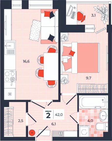 Продаётся 2-комнатная квартира в строящемся доме (Дом 30), срок сдачи: IV-кв. 2026, общей площадью 42 кв.м., на 2 этаже. Расположение, транспортная доступность Новый жилой комплекс "Юго-Восточный" строится в Туле, в 3,5 км от центра города. Благодаря удачным транспортным развязкам, автолюбители смогут доехать до центральных кварталов примерно за 5 10 минут, составив наиболее быстрый и удобный маршрут с учетом загруженности дорог. Проблем с мобильностью не возникнет и у пассажиров общественного транспорта. Рядом с домом расположены остановки автобусов и маршрутных такси, которые быстро довезут до любого района города. Так, чтобы добраться до центра, следует дойти пешком до остановки "Медтехника", где останавливается маршрутное такси, доезжающее до центральных кварталов всего за 7 8 минут. Инфраструктура Район, где возводится новый жилой комплекс, активно застраивается, и сеть инфраструктуры сов временем будет расширяться. Но и сейчас все, что нужно для комфортной жизни в городе, находится недалеко от жилого комплекса. В шаговой доступности расположены продуктовые магазины: "Виктория", "Овощи-фрукты", Магазин рыбы и мяса птицы, магазин мяса и колбас "У Максима", супермаркеты "Дикси", "Пятерочка", "SPAR". Неподалеку находится гипермаркет "Линия", крупный торговый центр, в котором расположены отделения банков, гипермаркет "Глобус", салон оптики, мебельный магазин "Столплит", зоомагазин "Четыре лапы" и пр. В соседнем здании находится строительный гипермаркет "Леруа Мерлен", за ним крупный магазин товаров для спорта, туризма и активного отдыха "Декатлон".Недалеко от жилого комплекса открыты кафе и рестораны: кофейня "Bonape", пиццерия "Культура", кафе "Вкуснов", кафе быстрого обслуживания "Rapido", ресторан "У фонтана" и пр.В районе есть аптеки, поликлиники, диагностические центры. В шаговой доступности от жилого комплекса расположено несколько детских садиков, в том числе, садик комбинированного вида "Алые паруса". Есть дошкольные отделения, входящие в состав образовательных центров, Центры развития ребенка. Поблизости расположены средние школы, в том числе, школа для детей с ОВЗ. Рядом с жилым комплексом находится Тульская Духовная Семинария и Суворовское училище. Надежность застройщик: достраивает объект ООО Ин-Групп.АрхитектураЖилой комплекс будет представлен 19 монолитно-кирпичными корпусами переменной этажности, выполненными в едином архитектурном стиле. При строительстве ЖК "Юго-Восточный" применяются современные материалы высокого качества, которые обеспечивают надежность домов и комфортный микроклимат в помещениях. Каждая секция оснащается современными лифтами. Помещения общего пользования отделываются экологичными материалами. Квартиры предлагаются однокомнатные (от 43,9 кв. м), двухкомнатные (от 45,8 кв. м), трехкомнатные (от 60,4 кв. м) и четырехкомнатные (от 87,2 кв. м), а также уютные студии (от 28,9 кв. м).На внутренней территории проводится комплексное благоустройство: озеленение, организация игровых площадок, мест для отдыха и занят