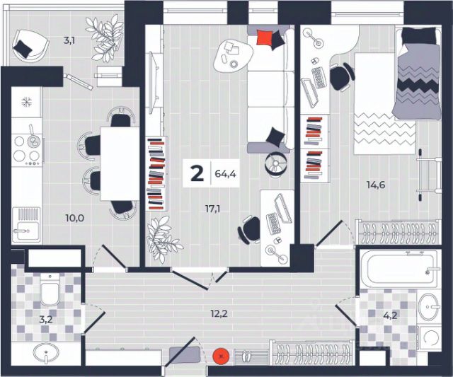 • ✓ В базе Циан 455 2-комнатных квартир в кирпично-монолитном доме в микрорайоне Юго-Восточный в городе Тула