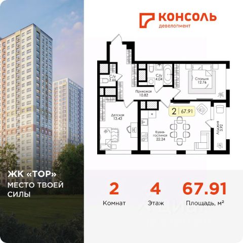 Продается двухкомнатная квартира 51 без отделки в ЖК "ТОР" площадью 55.9 на 6 этаже от застройщика Консоль девелопмент. Жилому комплексу ТОР присвоен повышенный уровень комфортности — комфорт плюс. Он подразумевает светлые просторные квартиры с большими окнами и удобной планировкой, оригинальные парадные и общественные пространства.