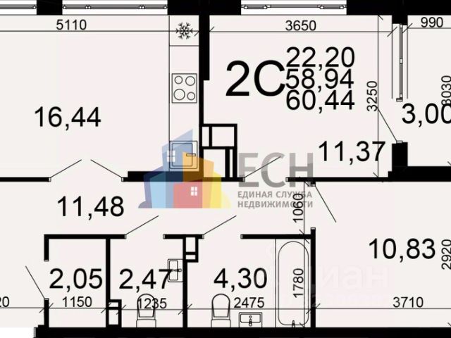 • Жилые комнаты: 10, 49 кв. м и 10, 28 кв. м.