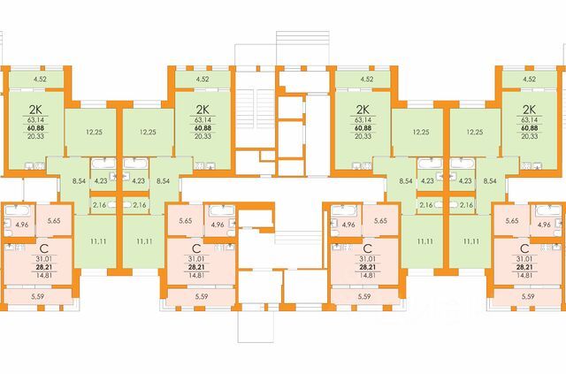 • ✅ Минимальная площадь: 60,9 м²