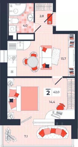 Продаётся 2-комнатная квартира в строящемся доме (Дом 30), срок сдачи: IV-кв. 2026, общей площадью 42 кв.м., на 5 этаже. Расположение, транспортная доступность Новый жилой комплекс "Юго-Восточный" строится в Туле, в 3,5 км от центра города. Благодаря удачным транспортным развязкам, автолюбители смогут доехать до центральных кварталов примерно за 5 10 минут, составив наиболее быстрый и удобный маршрут с учетом загруженности дорог. Проблем с мобильностью не возникнет и у пассажиров общественного транспорта. Рядом с домом расположены остановки автобусов и маршрутных такси, которые быстро довезут до любого района города. Так, чтобы добраться до центра, следует дойти пешком до остановки "Медтехника", где останавливается маршрутное такси, доезжающее до центральных кварталов всего за 7 8 минут. Инфраструктура Район, где возводится новый жилой комплекс, активно застраивается, и сеть инфраструктуры сов временем будет расширяться. Но и сейчас все, что нужно для комфортной жизни в городе, находится недалеко от жилого комплекса. В шаговой доступности расположены продуктовые магазины: "Виктория", "Овощи-фрукты", Магазин рыбы и мяса птицы, магазин мяса и колбас "У Максима", супермаркеты "Дикси", "Пятерочка", "SPAR". Неподалеку находится гипермаркет "Линия", крупный торговый центр, в котором расположены отделения банков, гипермаркет "Глобус", салон оптики, мебельный магазин "Столплит", зоомагазин "Четыре лапы" и пр. В соседнем здании находится строительный гипермаркет "Леруа Мерлен", за ним крупный магазин товаров для спорта, туризма и активного отдыха "Декатлон".Недалеко от жилого комплекса открыты кафе и рестораны: кофейня "Bonape", пиццерия "Культура", кафе "Вкуснов", кафе быстрого обслуживания "Rapido", ресторан "У фонтана" и пр.В районе есть аптеки, поликлиники, диагностические центры. В шаговой доступности от жилого комплекса расположено несколько детских садиков, в том числе, садик комбинированного вида "Алые паруса". Есть дошкольные отделения, входящие в состав образовательных центров, Центры развития ребенка. Поблизости расположены средние школы, в том числе, школа для детей с ОВЗ. Рядом с жилым комплексом находится Тульская Духовная Семинария и Суворовское училище. Надежность застройщик: достраивает объект ООО Ин-Групп.АрхитектураЖилой комплекс будет представлен 19 монолитно-кирпичными корпусами переменной этажности, выполненными в едином архитектурном стиле. При строительстве ЖК "Юго-Восточный" применяются современные материалы высокого качества, которые обеспечивают надежность домов и комфортный микроклимат в помещениях. Каждая секция оснащается современными лифтами. Помещения общего пользования отделываются экологичными материалами. Квартиры предлагаются однокомнатные (от 43,9 кв. м), двухкомнатные (от 45,8 кв. м), трехкомнатные (от 60,4 кв. м) и четырехкомнатные (от 87,2 кв. м), а также уютные студии (от 28,9 кв. м).На внутренней территории проводится комплексное благоустройство: озеленение, организация игровых площадок, мест для отдыха и занят
