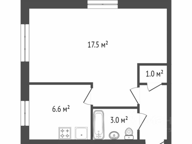 Планировка идеально подходит для семей с детьми, и не только, так как существуют две отдельные комнаты, одна побольше, где можно сделать, например, разделение на спальную зону, и гостевую. И маленькая комната, например для детей, или же просто как отдельная спальня.