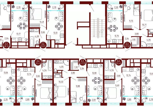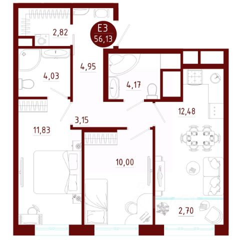 • В данной квартире скорее классическая планировка, с просторной кухней почти 13 метров, лоджией, двумя раздельными спальнями, двумя санузлами (один с ванной, второй с душевой), объединяющим все пространство коридором (который функционально используется для хранения) и вместительной кладовой комнатой. Но также возможно сделать перепланировку и превратить её в трехкомнатную, проект по запросу предоставлю.