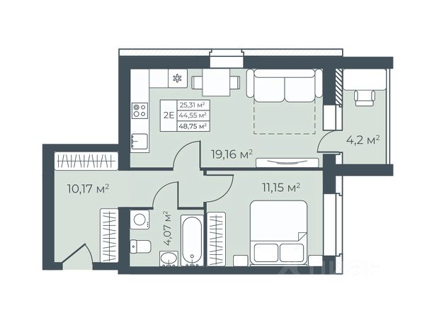 Квартира расположена на 19 этаже, в доме, который станет одной из самых статусных точек центра города.