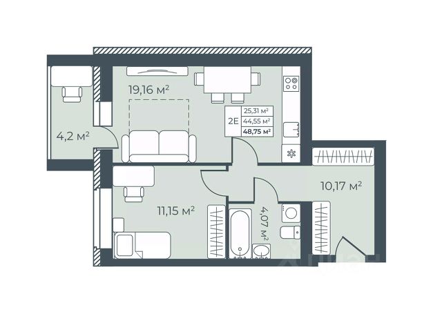 Квартира расположена на 19 этаже, в доме, который станет одной из самых статусных точек центра города.