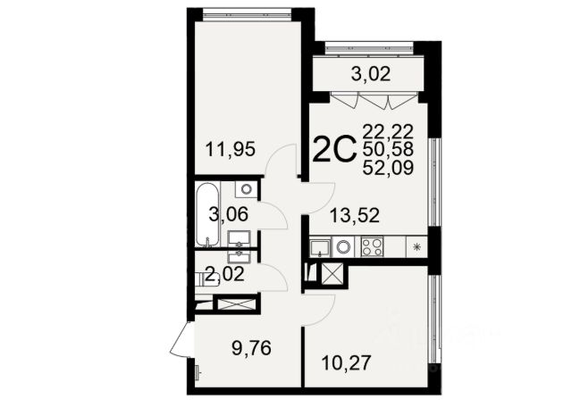 Продаётся 2-комнатная квартира в строящемся доме (4-я очередь), срок сдачи: III-кв. 2026, общей площадью 59.71 кв.м., на 12 этаже. Новый жилой дом от застройщика "ГК Стройальянс" расположен по адресу: Тульская область, Ленинский район, п. Петровский, Одоевское шоссе