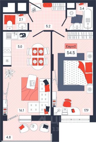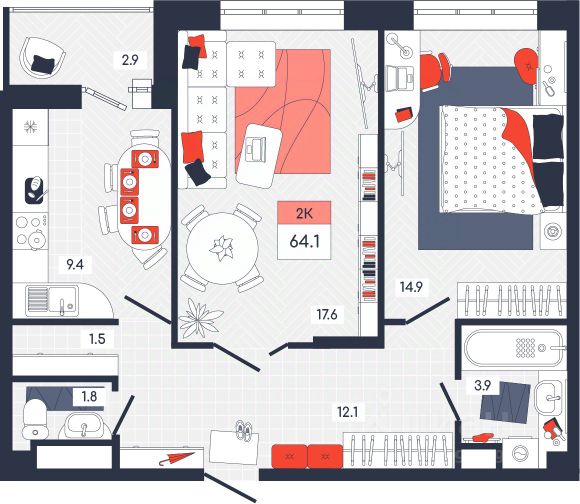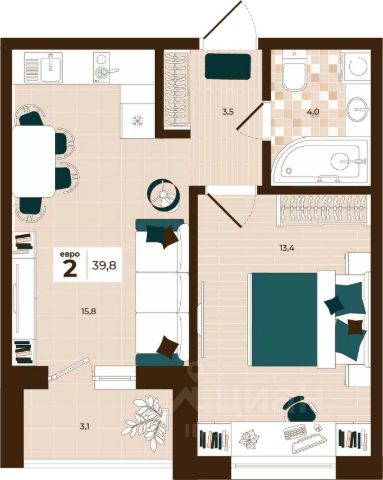 Продаётся 2-комнатная квартира в строящемся доме (Дом 28), срок сдачи: I-кв. 2027, общей площадью 40.2 кв.м., на 6 этаже. Расположение, транспортная доступность Новый жилой комплекс "Юго-Восточный" строится в Туле, в 3,5 км от центра города. Благодаря удачным транспортным развязкам, автолюбители смогут доехать до центральных кварталов примерно за 5 10 минут, составив наиболее быстрый и удобный маршрут с учетом загруженности дорог. Проблем с мобильностью не возникнет и у пассажиров общественного транспорта. Рядом с домом расположены остановки автобусов и маршрутных такси, которые быстро довезут до любого района города. Так, чтобы добраться до центра, следует дойти пешком до остановки "Медтехника", где останавливается маршрутное такси, доезжающее до центральных кварталов всего за 7 8 минут. Инфраструктура Район, где возводится новый жилой комплекс, активно застраивается, и сеть инфраструктуры сов временем будет расширяться. Но и сейчас все, что нужно для комфортной жизни в городе, находится недалеко от жилого комплекса. В шаговой доступности расположены продуктовые магазины: "Виктория", "Овощи-фрукты", Магазин рыбы и мяса птицы, магазин мяса и колбас "У Максима", супермаркеты "Дикси", "Пятерочка", "SPAR". Неподалеку находится гипермаркет "Линия", крупный торговый центр, в котором расположены отделения банков, гипермаркет "Глобус", салон оптики, мебельный магазин "Столплит", зоомагазин "Четыре лапы" и пр. В соседнем здании находится строительный гипермаркет "Леруа Мерлен", за ним крупный магазин товаров для спорта, туризма и активного отдыха "Декатлон".Недалеко от жилого комплекса открыты кафе и рестораны: кофейня "Bonape", пиццерия "Культура", кафе "Вкуснов", кафе быстрого обслуживания "Rapido", ресторан "У фонтана" и пр.В районе есть аптеки, поликлиники, диагностические центры. В шаговой доступности от жилого комплекса расположено несколько детских садиков, в том числе, садик комбинированного вида "Алые паруса". Есть дошкольные отделения, входящие в состав образовательных центров, Центры развития ребенка. Поблизости расположены средние школы, в том числе, школа для детей с ОВЗ. Рядом с жилым комплексом находится Тульская Духовная Семинария и Суворовское училище. Надежность застройщик: достраивает объект ООО Ин-Групп.АрхитектураЖилой комплекс будет представлен 19 монолитно-кирпичными корпусами переменной этажности, выполненными в едином архитектурном стиле. При строительстве ЖК "Юго-Восточный" применяются современные материалы высокого качества, которые обеспечивают надежность домов и комфортный микроклимат в помещениях. Каждая секция оснащается современными лифтами. Помещения общего пользования отделываются экологичными материалами. Квартиры предлагаются однокомнатные (от 43,9 кв. м), двухкомнатные (от 45,8 кв. м), трехкомнатные (от 60,4 кв. м) и четырехкомнатные (от 87,2 кв. м), а также уютные студии (от 28,9 кв. м).На внутренней территории проводится комплексное благоустройство: озеленение, организация игровых площадок, мест для отдыха и заня 2-комнатная квартира в микрорайоне Юго-Восточный в городе Тула.