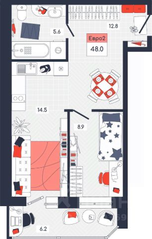Продаётся 2-комнатная квартира в строящемся доме (Дом 20), срок сдачи: I-кв. 2026, общей площадью 47.3 кв.м., на 10 этаже. Расположение, транспортная доступность Новый жилой комплекс "Юго-Восточный" строится в Туле, в 3,5 км от центра города. Благодаря удачным транспортным развязкам, автолюбители смогут доехать до центральных кварталов примерно за 5 10 минут, составив наиболее быстрый и удобный маршрут с учетом загруженности дорог. Проблем с мобильностью не возникнет и у пассажиров общественного транспорта. Рядом с домом расположены остановки автобусов и маршрутных такси, которые быстро довезут до любого района города. Так, чтобы добраться до центра, следует дойти пешком до остановки "Медтехника", где останавливается маршрутное такси, доезжающее до центральных кварталов всего за 7 8 минут. Инфраструктура Район, где возводится новый жилой комплекс, активно застраивается, и сеть инфраструктуры сов временем будет расширяться. Но и сейчас все, что нужно для комфортной жизни в городе, находится недалеко от жилого комплекса. В шаговой доступности расположены продуктовые магазины: "Виктория", "Овощи-фрукты", Магазин рыбы и мяса птицы, магазин мяса и колбас "У Максима", супермаркеты "Дикси", "Пятерочка", "SPAR". Неподалеку находится гипермаркет "Линия", крупный торговый центр, в котором расположены отделения банков, гипермаркет "Глобус", салон оптики, мебельный магазин "Столплит", зоомагазин "Четыре лапы" и пр. В соседнем здании находится строительный гипермаркет "Леруа Мерлен", за ним крупный магазин товаров для спорта, туризма и активного отдыха "Декатлон".Недалеко от жилого комплекса открыты кафе и рестораны: кофейня "Bonape", пиццерия "Культура", кафе "Вкуснов", кафе быстрого обслуживания "Rapido", ресторан "У фонтана" и пр.В районе есть аптеки, поликлиники, диагностические центры. В шаговой доступности от жилого комплекса расположено несколько детских садиков, в том числе, садик комбинированного вида "Алые паруса". Есть дошкольные отделения, входящие в состав образовательных центров, Центры развития ребенка. Поблизости расположены средние школы, в том числе, школа для детей с ОВЗ. Рядом с жилым комплексом находится Тульская Духовная Семинария и Суворовское училище. Надежность застройщик: достраивает объект ООО Ин-Групп.АрхитектураЖилой комплекс будет представлен 19 монолитно-кирпичными корпусами переменной этажности, выполненными в едином архитектурном стиле. При строительстве ЖК "Юго-Восточный" применяются современные материалы высокого качества, которые обеспечивают надежность домов и комфортный микроклимат в помещениях. Каждая секция оснащается современными лифтами. Помещения общего пользования отделываются экологичными материалами. Квартиры предлагаются однокомнатные (от 43,9 кв. м), двухкомнатные (от 45,8 кв. м), трехкомнатные (от 60,4 кв. м) и четырехкомнатные (от 87,2 кв. м), а также уютные студии (от 28,9 кв. м).На внутренней территории проводится комплексное благоустройство: озеленение, организация игровых площадок, мест для отдыха и зан 2-комнатная квартира в микрорайоне Юго-Восточный в городе Тула.