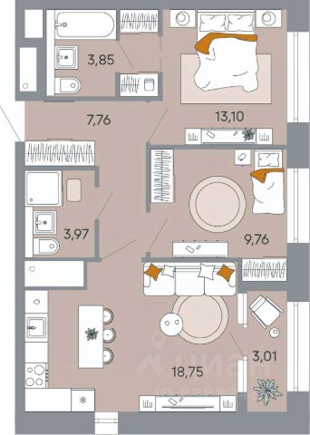 Продаётся 2-комнатная квартира в строящемся доме (Корпус 1), срок сдачи: I-кв. 2029, общей площадью 60.2 кв.м., на 3 этаже.