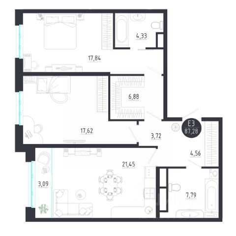 Продаётся 2-комнатная квартира в строящемся доме (Корпус 1), срок сдачи: IV-кв. 2028, общей площадью 87.28 кв.м., на 3 этаже. Новый жилой комплекс "LANGERHALL" от застройщика "ЦСМ" расположен по адресу: г. Тула, Оборонная улица