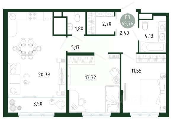 Продаётся 2-комнатная квартира в строящемся доме (Позиция 2), срок сдачи: III-кв. 2029, общей площадью 65.76 кв.м., на 17 этаже. Новый жилой комплекс в г. Тула "Платон Парк" от застройщика ООО "СЗ "МОНОЛИТ""