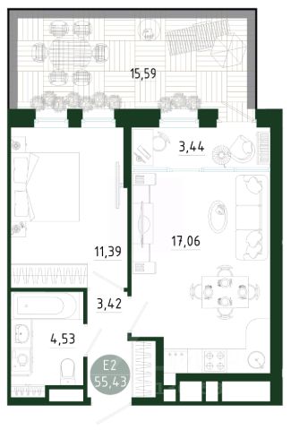 Продаётся 2-комнатная квартира в строящемся доме (Позиция 2), срок сдачи: III-кв. 2029, общей площадью 55.43 кв.м., на 1 этаже. Новый жилой комплекс в г. Тула "Платон Парк" от застройщика ООО "СЗ "МОНОЛИТ""