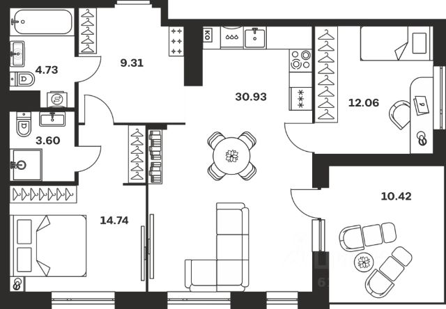• ✓ Минимальная площадь: 60,2 м²