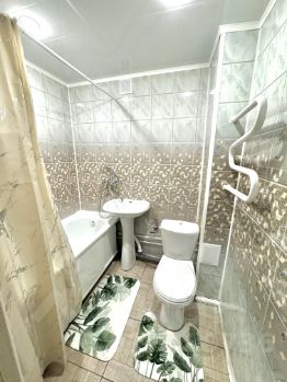 Кухня небольшая, стандартные 5.5кв.м., санузел совмещенный.