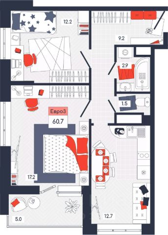Продаётся 3-комнатная квартира в строящемся доме (Дом 20), срок сдачи: IV-кв. 2025, общей площадью 60.7 кв.м., на 6 этаже. Расположение, транспортная доступность Новый жилой комплекс "Юго-Восточный" строится в Туле, в 3,5 км от центра города. Благодаря удачным транспортным развязкам, автолюбители смогут доехать до центральных кварталов примерно за 5 10 минут, составив наиболее быстрый и удобный маршрут с учетом загруженности дорог. Проблем с мобильностью не возникнет и у пассажиров общественного транспорта. Рядом с домом расположены остановки автобусов и маршрутных такси, которые быстро довезут до любого района города. Так, чтобы добраться до центра, следует дойти пешком до остановки "Медтехника", где останавливается маршрутное такси, доезжающее до центральных кварталов всего за 7 8 минут. Инфраструктура Район, где возводится новый жилой комплекс, активно застраивается, и сеть инфраструктуры сов временем будет расширяться. Но и сейчас все, что нужно для комфортной жизни в городе, находится недалеко от жилого комплекса. В шаговой доступности расположены продуктовые магазины: "Виктория", "Овощи-фрукты", Магазин рыбы и мяса птицы, магазин мяса и колбас "У Максима", супермаркеты "Дикси", "Пятерочка", "SPAR". Неподалеку находится гипермаркет "Линия", крупный торговый центр, в котором расположены отделения банков, гипермаркет "Глобус", салон оптики, мебельный магазин "Столплит", зоомагазин "Четыре лапы" и пр. В соседнем здании находится строительный гипермаркет "Леруа Мерлен", за ним крупный магазин товаров для спорта, туризма и активного отдыха "Декатлон".Недалеко от жилого комплекса открыты кафе и рестораны: кофейня "Bonape", пиццерия "Культура", кафе "Вкуснов", кафе быстрого обслуживания "Rapido", ресторан "У фонтана" и пр.В районе есть аптеки, поликлиники, диагностические центры. В шаговой доступности от жилого комплекса расположено несколько детских садиков, в том числе, садик комбинированного вида "Алые паруса". Есть дошкольные отделения, входящие в состав образовательных центров, Центры развития ребенка. Поблизости расположены средние школы, в том числе, школа для детей с ОВЗ. Рядом с жилым комплексом находится Тульская Духовная Семинария и Суворовское училище. Надежность застройщик: достраивает объект ООО Ин-Групп.АрхитектураЖилой комплекс будет представлен 19 монолитно-кирпичными корпусами переменной этажности, выполненными в едином архитектурном стиле. При строительстве ЖК "Юго-Восточный" применяются современные материалы высокого качества, которые обеспечивают надежность домов и комфортный микроклимат в помещениях. Каждая секция оснащается современными лифтами. Помещения общего пользования отделываются экологичными материалами. Квартиры предлагаются однокомнатные (от 43,9 кв. м), двухкомнатные (от 45,8 кв. м), трехкомнатные (от 60,4 кв. м) и четырехкомнатные (от 87,2 кв. м), а также уютные студии (от 28,9 кв. м).На внутренней территории проводится комплексное благоустройство: озеленение, организация игровых площадок, мест для отдыха и зан