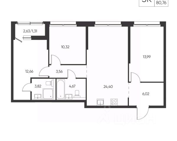 Продается отличная трехкомнатная квартира площадью 81,3 кв. м. Расположена на 15 этаже 16-этажного дома, построенного в 2004 году. 3 комнатная квартира с очень удобной планировкой: спальня, детская, гостиная, большая кухня, большой коридор и прихожая, балкон и гардеробная при входе.