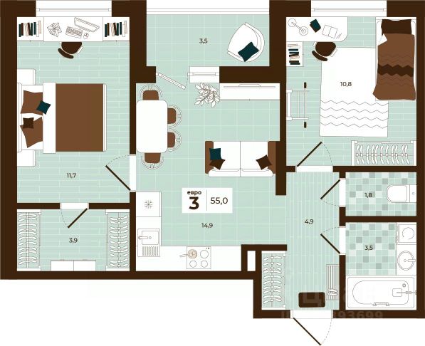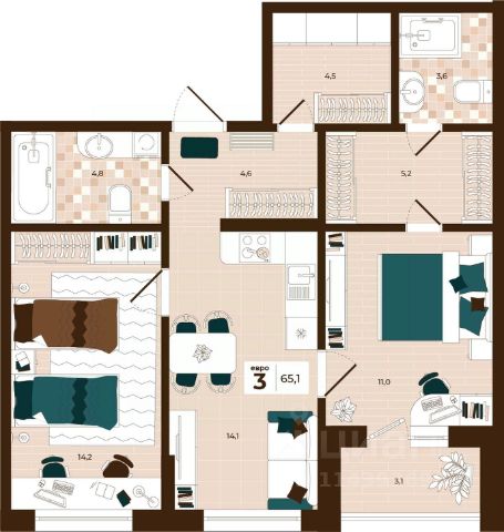 Продаётся 3-комнатная квартира в строящемся доме (Дом 28), срок сдачи: I-кв. 2027, общей площадью 49.3 кв.м., на 10 этаже. Расположение, транспортная доступность Новый жилой комплекс "Юго-Восточный" строится в Туле, в 3,5 км от центра города. Благодаря удачным транспортным развязкам, автолюбители смогут доехать до центральных кварталов примерно за 5 10 минут, составив наиболее быстрый и удобный маршрут с учетом загруженности дорог. Проблем с мобильностью не возникнет и у пассажиров общественного транспорта. Рядом с домом расположены остановки автобусов и маршрутных такси, которые быстро довезут до любого района города. Так, чтобы добраться до центра, следует дойти пешком до остановки "Медтехника", где останавливается маршрутное такси, доезжающее до центральных кварталов всего за 7 8 минут. Инфраструктура Район, где возводится новый жилой комплекс, активно застраивается, и сеть инфраструктуры сов временем будет расширяться. Но и сейчас все, что нужно для комфортной жизни в городе, находится недалеко от жилого комплекса. В шаговой доступности расположены продуктовые магазины: "Виктория", "Овощи-фрукты", Магазин рыбы и мяса птицы, магазин мяса и колбас "У Максима", супермаркеты "Дикси", "Пятерочка", "SPAR". Неподалеку находится гипермаркет "Линия", крупный торговый центр, в котором расположены отделения банков, гипермаркет "Глобус", салон оптики, мебельный магазин "Столплит", зоомагазин "Четыре лапы" и пр. В соседнем здании находится строительный гипермаркет "Леруа Мерлен", за ним крупный магазин товаров для спорта, туризма и активного отдыха "Декатлон".Недалеко от жилого комплекса открыты кафе и рестораны: кофейня "Bonape", пиццерия "Культура", кафе "Вкуснов", кафе быстрого обслуживания "Rapido", ресторан "У фонтана" и пр.В районе есть аптеки, поликлиники, диагностические центры. В шаговой доступности от жилого комплекса расположено несколько детских садиков, в том числе, садик комбинированного вида "Алые паруса". Есть дошкольные отделения, входящие в состав образовательных центров, Центры развития ребенка. Поблизости расположены средние школы, в том числе, школа для детей с ОВЗ. Рядом с жилым комплексом находится Тульская Духовная Семинария и Суворовское училище. Надежность застройщик: достраивает объект ООО Ин-Групп.АрхитектураЖилой комплекс будет представлен 19 монолитно-кирпичными корпусами переменной этажности, выполненными в едином архитектурном стиле. При строительстве ЖК "Юго-Восточный" применяются современные материалы высокого качества, которые обеспечивают надежность домов и комфортный микроклимат в помещениях. Каждая секция оснащается современными лифтами. Помещения общего пользования отделываются экологичными материалами. Квартиры предлагаются однокомнатные (от 43,9 кв. м), двухкомнатные (от 45,8 кв. м), трехкомнатные (от 60,4 кв. м) и четырехкомнатные (от 87,2 кв. м), а также уютные студии (от 28,9 кв. м).На внутренней территории проводится комплексное благоустройство: озеленение, организация игровых площадок, мест для отдыха и зан